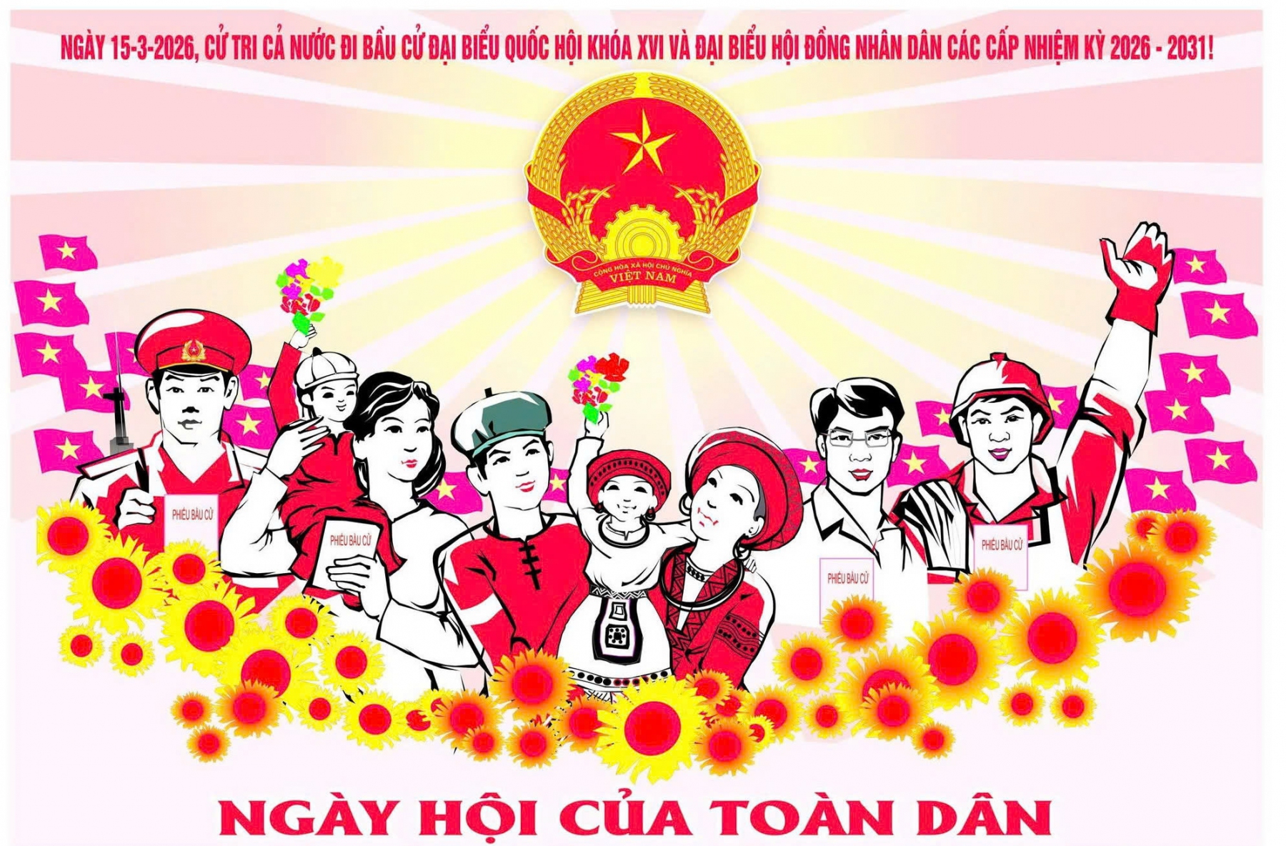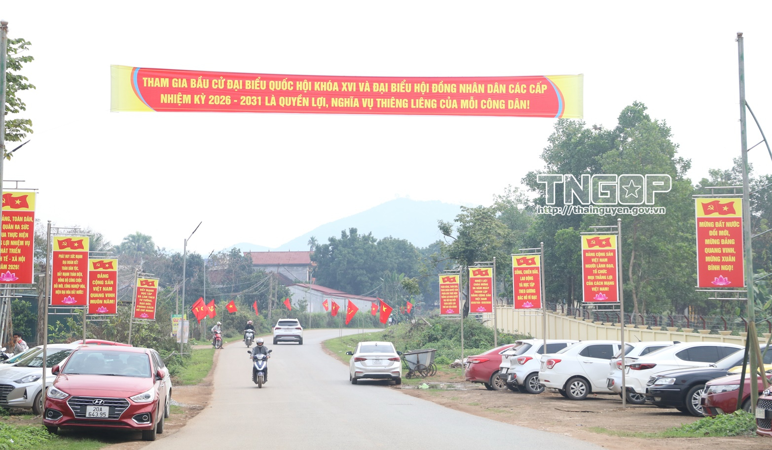 Trục đường chính xã Nam Hòa được trang trí rực rỡ trước ngày bầu cử